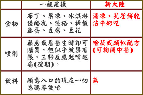 雖然早知道腸病毒沒有特效藥,就是得把這嘴破的過程熬過去,藥吃了一堆(都是些止痛、消炎、抗生素)、口腔噴劑買了兩種口味,剛開始真的是搶著噴,不過到後來都不肯用了,說是很辣、越噴越痛;而且小朋友應該盡量少用!所以我還是上網估狗了一下(為求心安?)。不過,真的還是有新發現喔!